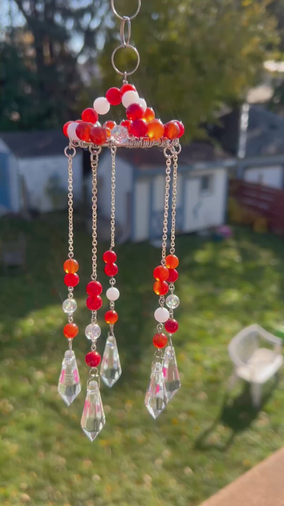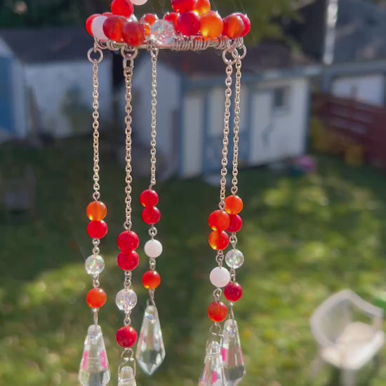 Crafted with Carnelian, this windchime chandelier style has 2 inch ring size and is 10 inches long, exquisitely handmade for a unique and stunning addition to any space.